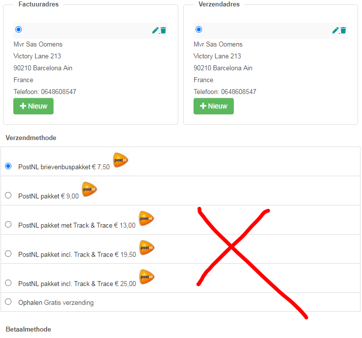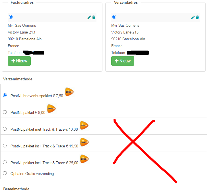 Then I changed the zone restrictions on the Shipment Methode to "Europe Shipping" and then this happened.