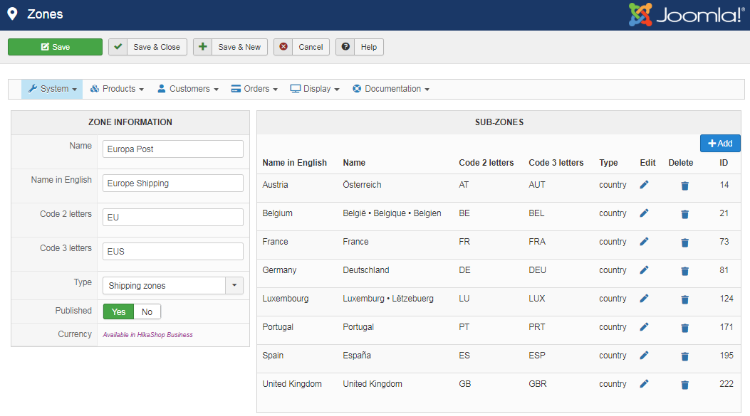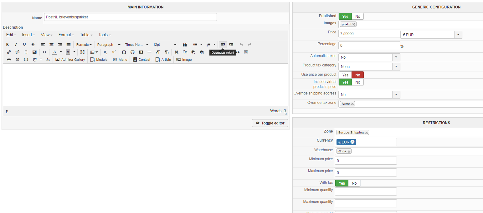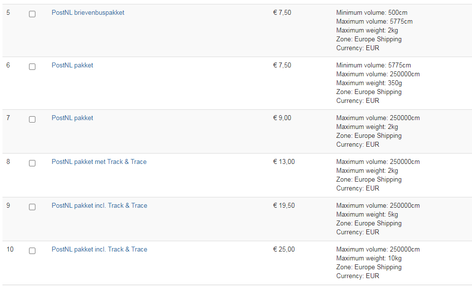 Then I realized that there might be some interest from Germany and Spain as well, but I didn't want to copy them to two more countries and found out about the Shipping zones. So I created a shipping zone called Europe Shipping and included Belgium, Spain, France, Germany and some others in that zone.