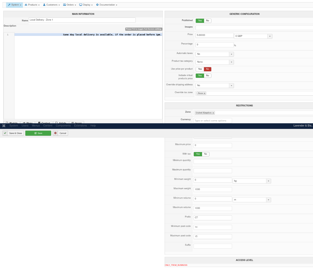 Problem: when ordering, no matter what text I place in the delivery "post code" field, ONLY the National UK delivery method is shown. The prefix functionality does not appear to work.