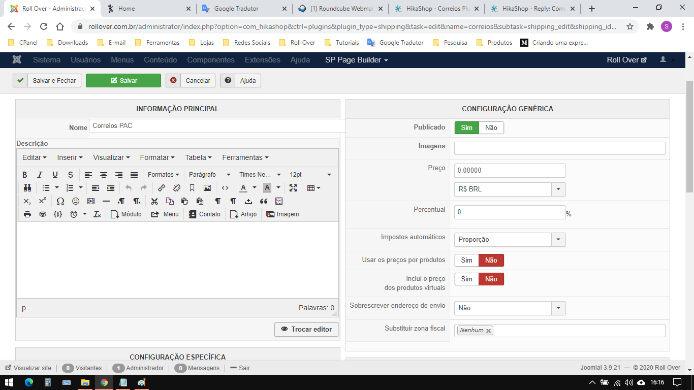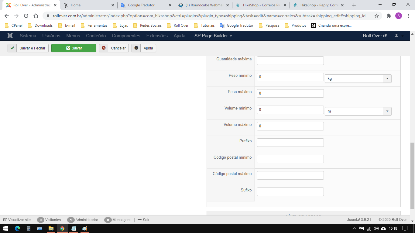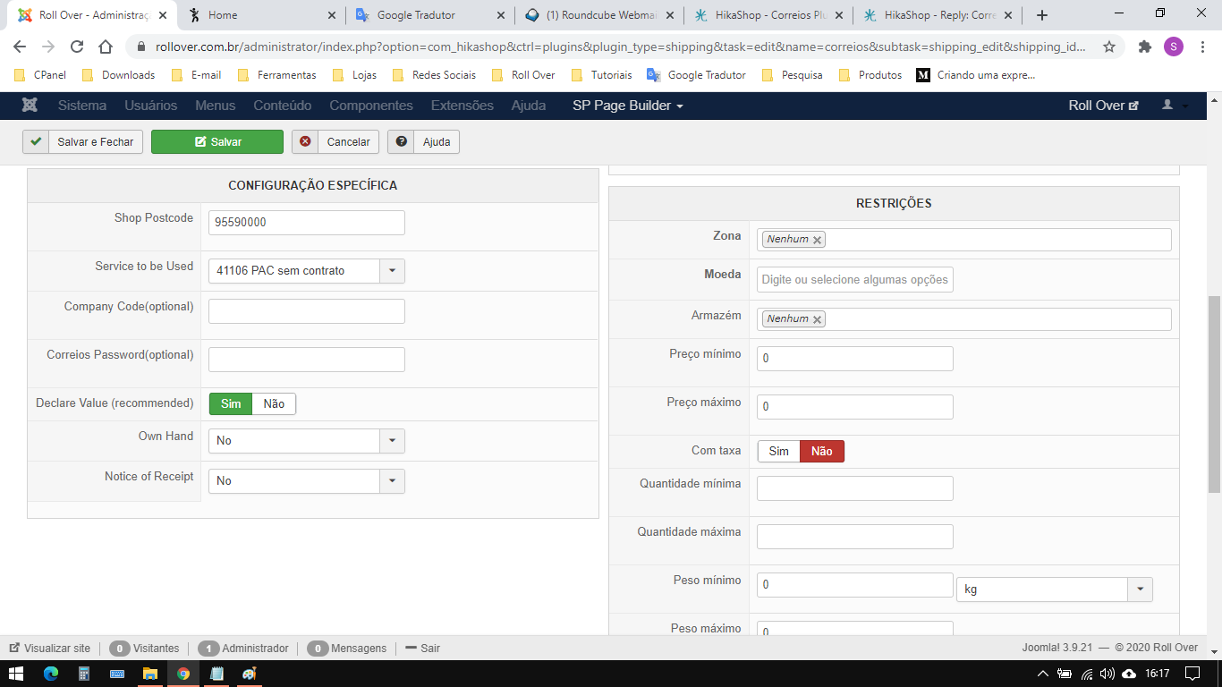 Other point, it seems that the plugin have to communicate with Correios servers, maybe Correios have changed his communication standards ?...
