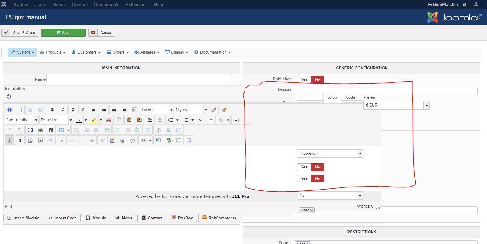 Thanks Mohamed, you're right! I tried to use other editors, but somehow JCE remained. Now I've disabled JCE's Depault Profile and use Tiny MCE. It now works perfectly.
