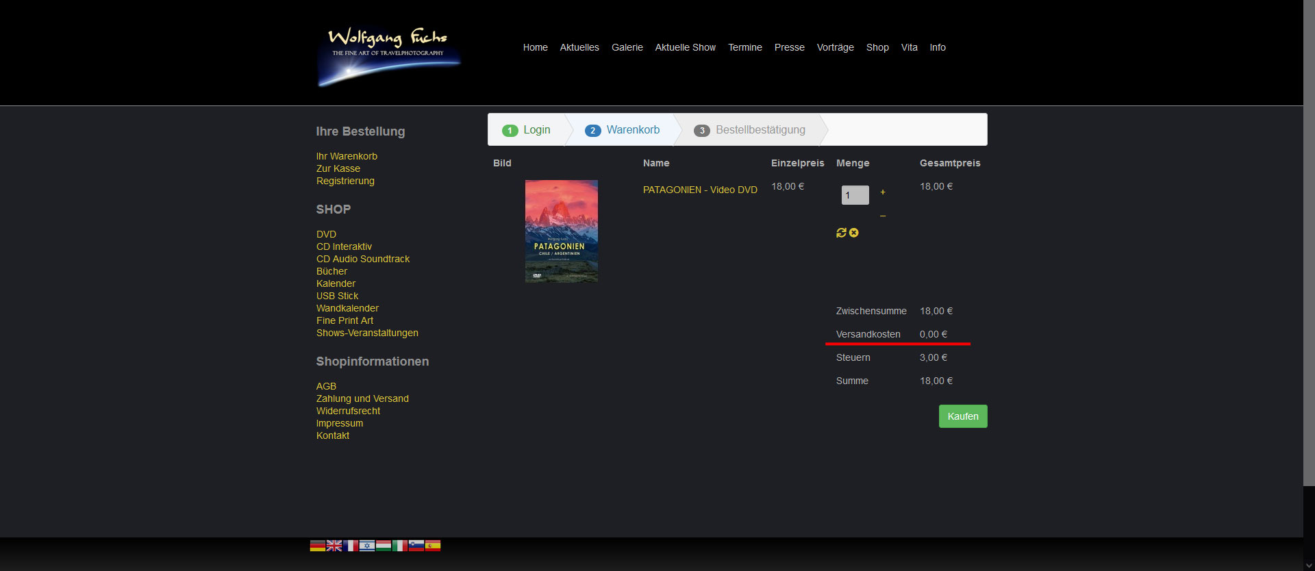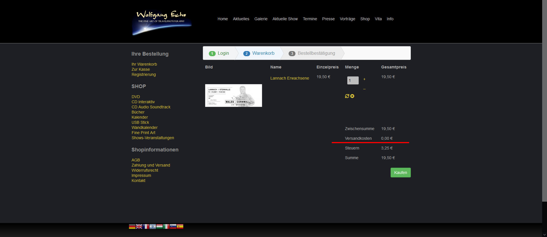 Für die Versandgüter ist generell ein Versandkostenpreis für Deutschland und Schweiz € 7,- angegeben, für Österreich € 4,-