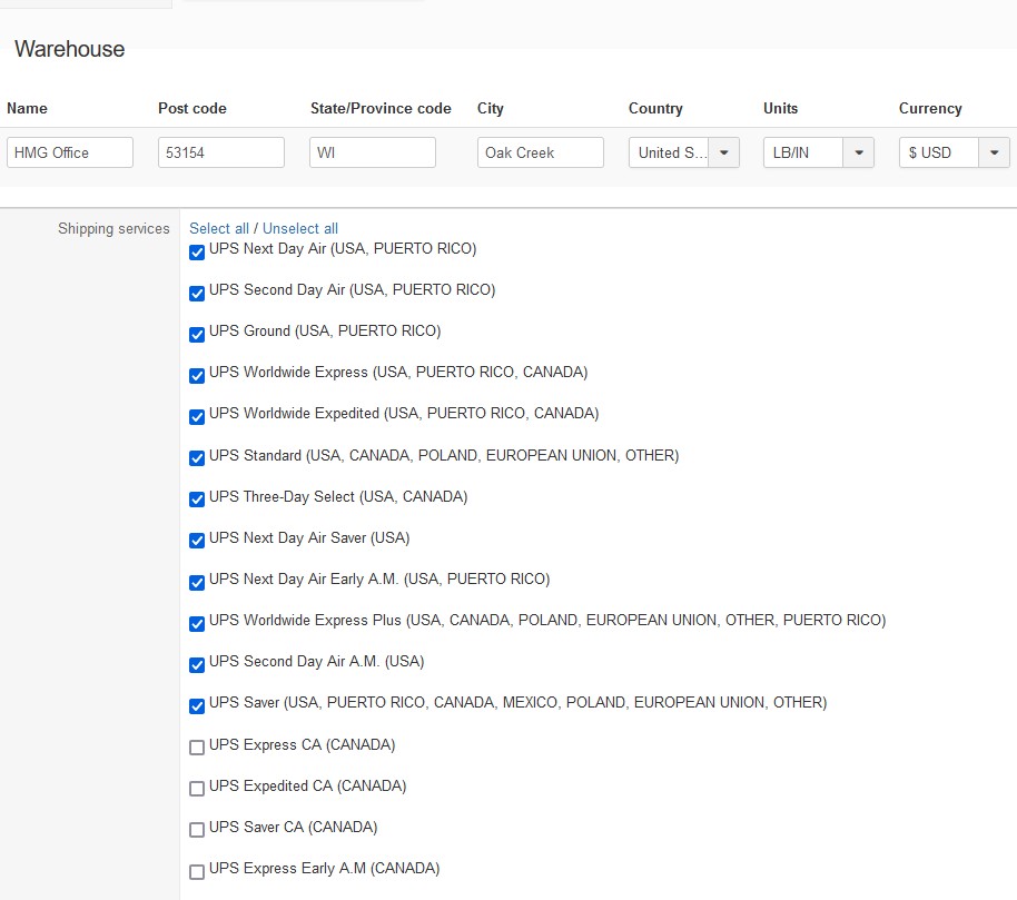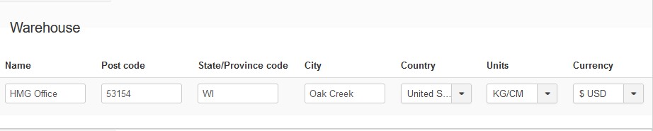 You might need to change the dimensions and weight units for the USA country and use LB/IN instead of KG/CM.