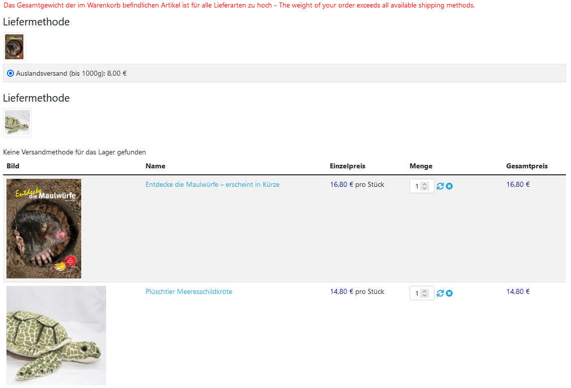 In your screenshot of the checkout, what is displayed clearly indicates that the products are in two different warehouses.