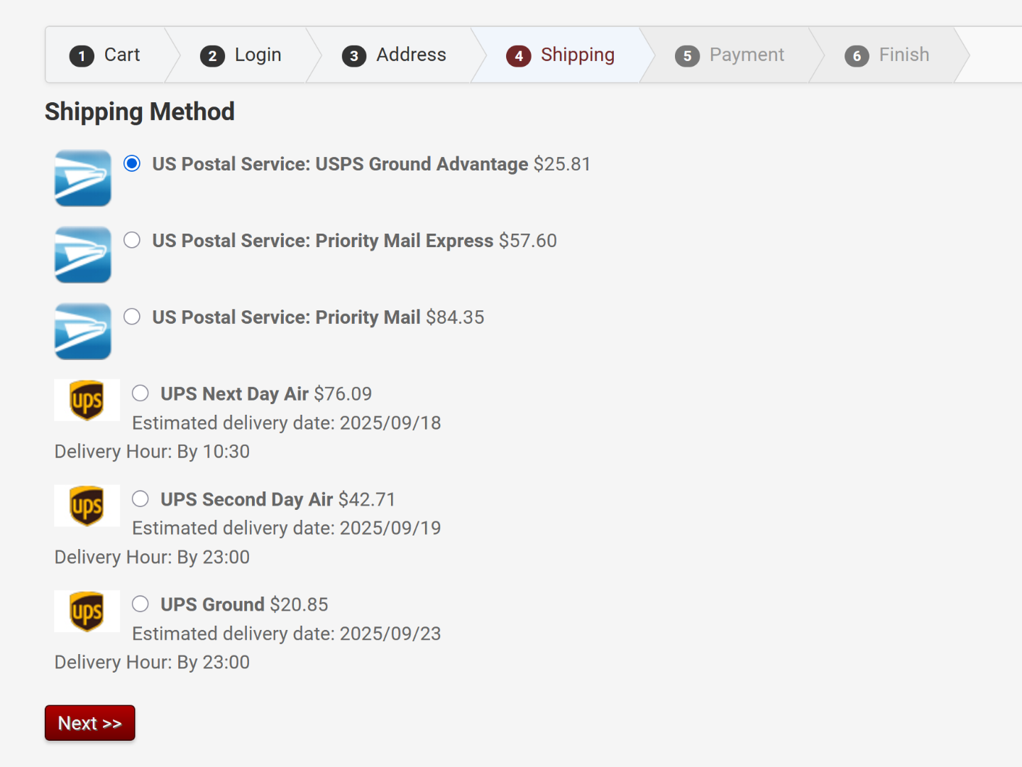 - Priority Mail, Ground Advantage, and First-Class Mail selected.
