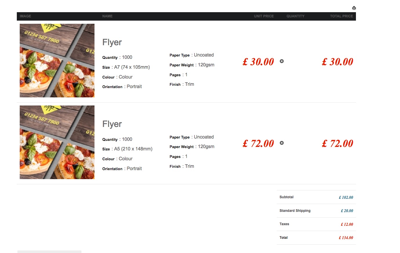 See attached - the subtotal is £102 and the tax is set to 20% which should result in £20.4 in tax but Hikashop is using the price I gave to the product (in that cas Flyer which is set to £30) and calculates 2 x Flyer = £60 therefore tax is £12