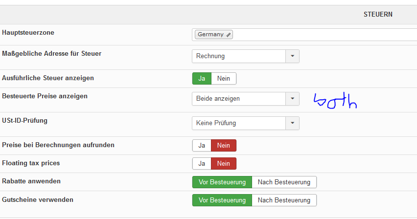 The displayed price is the price I need to corresponnd with the tax office, but the customer should be aware of the full price he has to pay. The tax should´t be calculated afterwards.