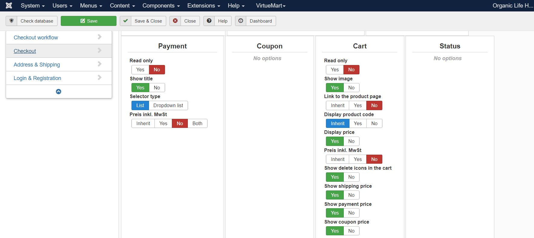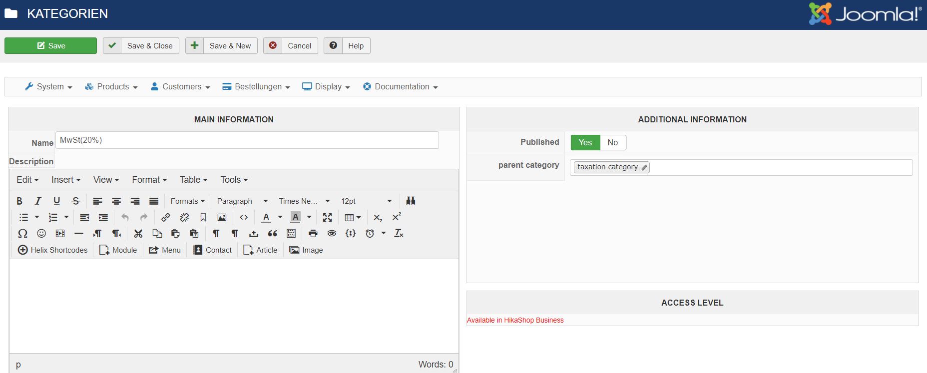 Then, in the HikaShop configuration, you want to change the "show taxed prices" to yes so that you display the prices of the products with the taxes on your shop and not the prices without taxes.