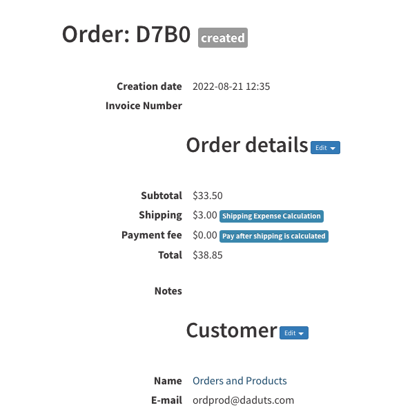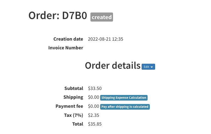 I also properly set the tax rate in the product and for the shipping of the order D7D2 and the total was properly calculated.