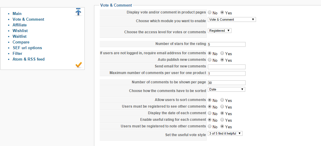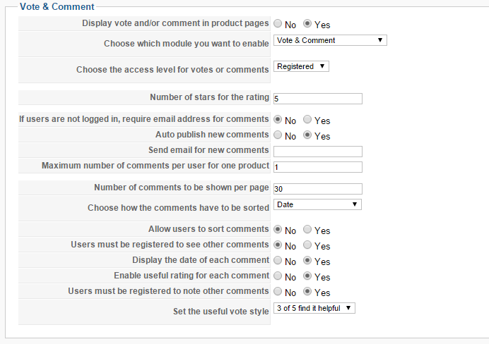 i do not have the 'display vote in products page' in the hikashop configuration settings.