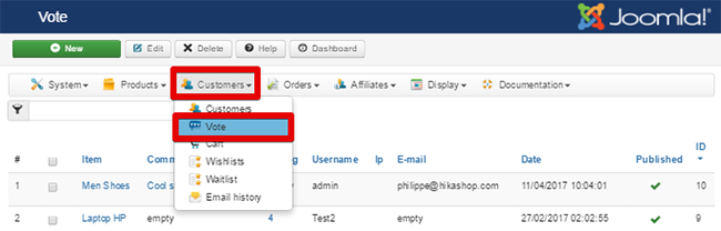 I proceed some test directly on your website and succeed to have some comment and vote.