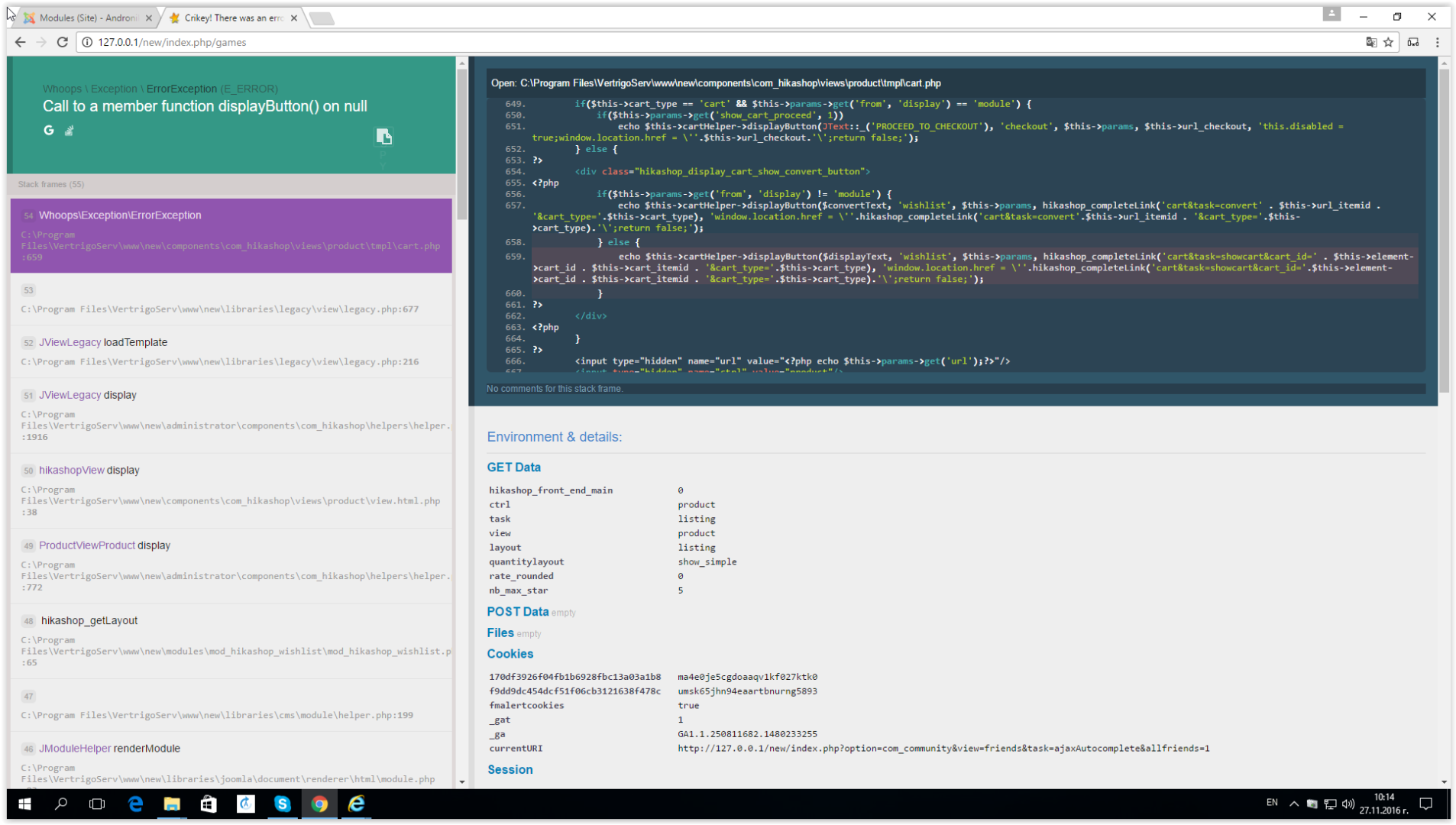 You're displaying the view "product / cart".