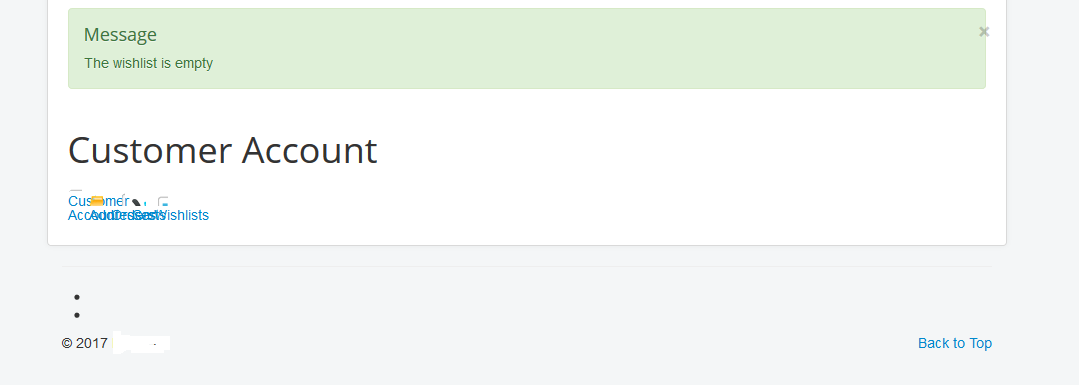 However if you add anything to wishlist and delete it that message no longer appears instead you see empty table elements and so on.