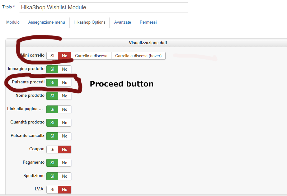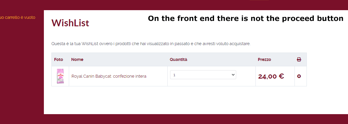 Using the module: HikaShop Wishlist it doesn't display the PROCEED BUTTON on the front end.