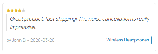 This module displays a listing of recent product comments from your HikaShop store anywhere on your website. It provides a clean, styled display of customer feedback with star ratings, comment excerpts, author names, dates, and direct links to the reviewed products.