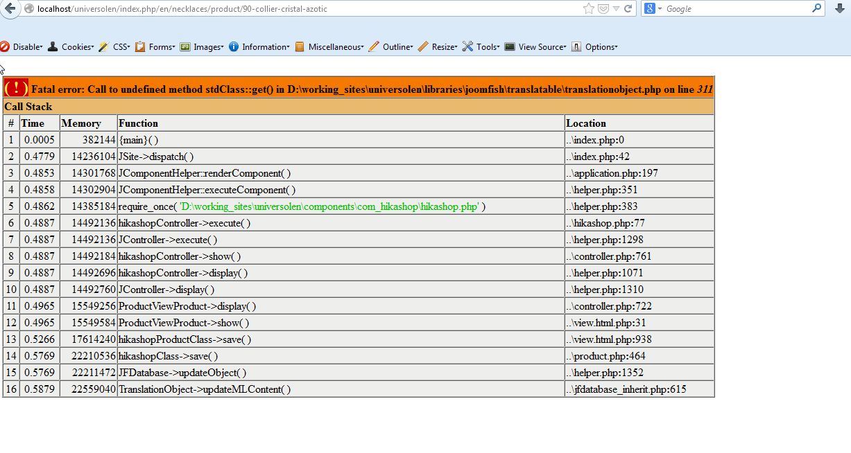 -- Message: FATAL ERROR call to undefined method in stdClass::get() in /libraries/joomfish/translatable/translationobject.php line 311