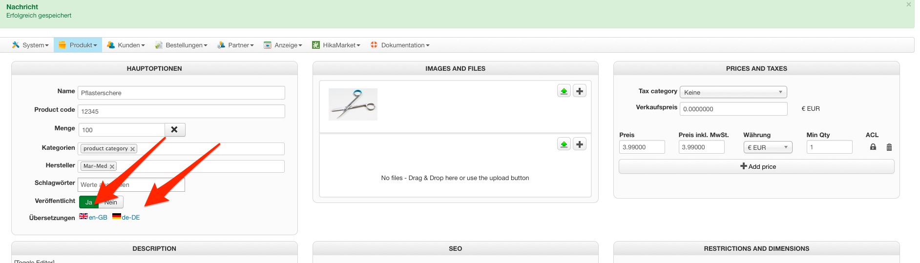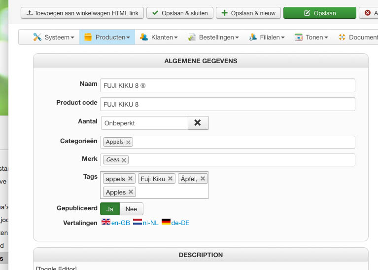 So you have set a description on the main product edition page, and when clicking on the other language flag added the description in the popup ?