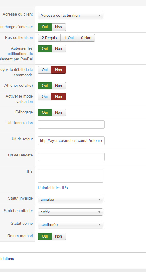 J'ai activé le debug dans le plugin PayPal et fais plusieurs tests.
