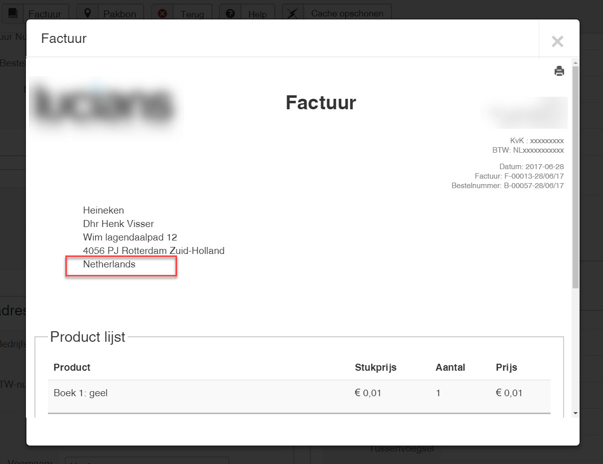 The name used for the country on the address printed in invoices/shipping invoices is always the name in English.