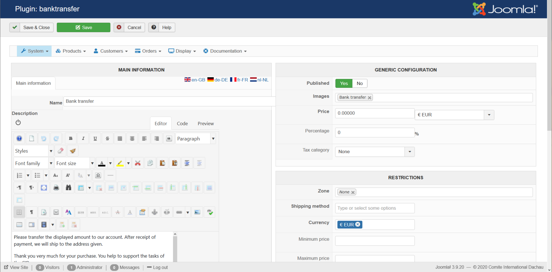 I upgraded to Hikashop essentials In order to be able to translate for example the shipping information. The Tabs are there and I can enter the translations and safe them. However they disappear. There is an error in the server log: