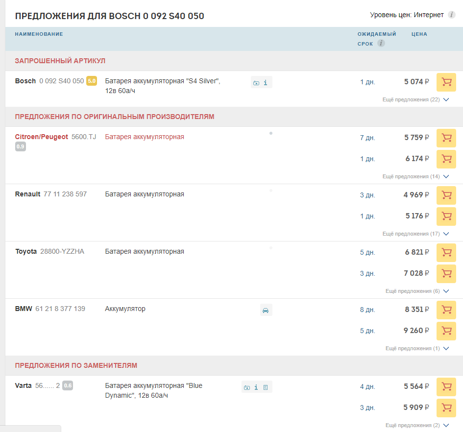Главное условие в том, что нужно что бы был один и тот же товар с одинаковым артикулом, номером, итд только на другом складе только с другой ценой и сроками доставки.