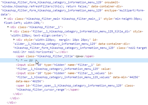 Двоеточие в фильтре по цене