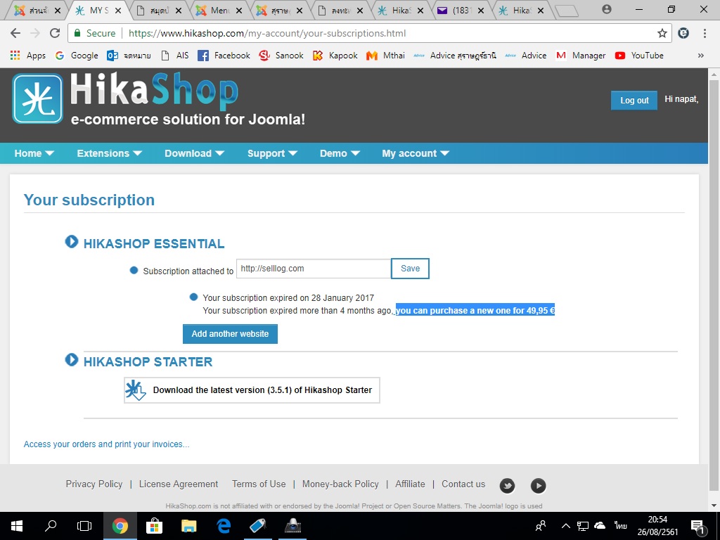 HikaShop Essential - We did not find a licence attached to your website selllog.com/shop/ ....