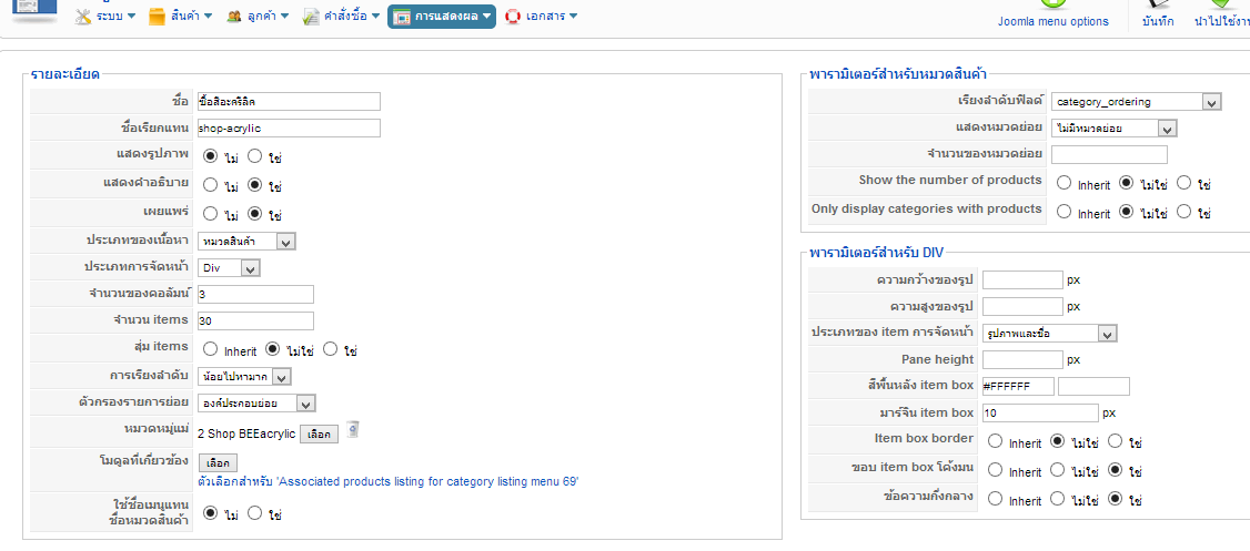 ขอภาพการ setting โมดุลของสินค้านหัวข้อนั้นด้วยครับ