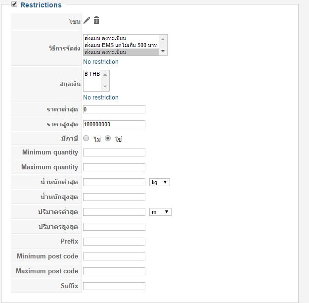 แต่ว่าการกำหนดค่าขนส่ง โดยใช้จำนวนชิ้น ไม่สามารถทำได้ครับ แนะนำว่าให้ใช้รุ่น HikaShop Business ครับ