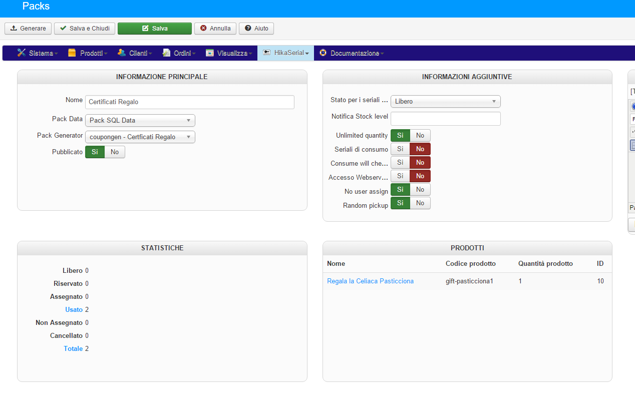 2. i create a pack having 'pack generator' = the value create in step1, and in 'product' i add a product having his price.