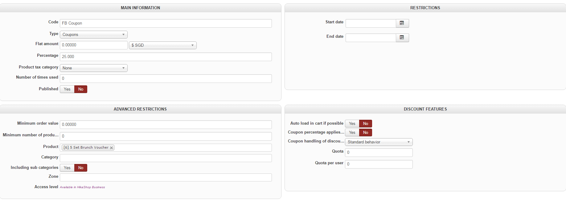 I tried to follow your documentation but it seems rather complicated and I still cant get it to work. Can you walk me through step by step on how I can achieve this. Offline we will be giving out some promo codes generated from Hikaserial to our customers, and they can use this codes online to purchase products(using hikashop) at our website and get a discount on the product. I have used the coupon generator and assign a pack to the product, but when I checkout and apply the code it is not working.