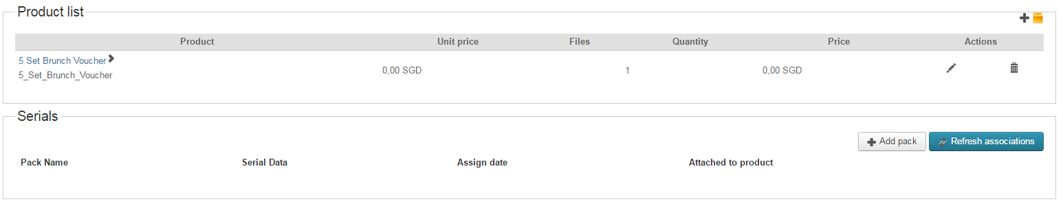- Click on the button "refresh serials" if the order is already confirmed but the serial generation went wrong.