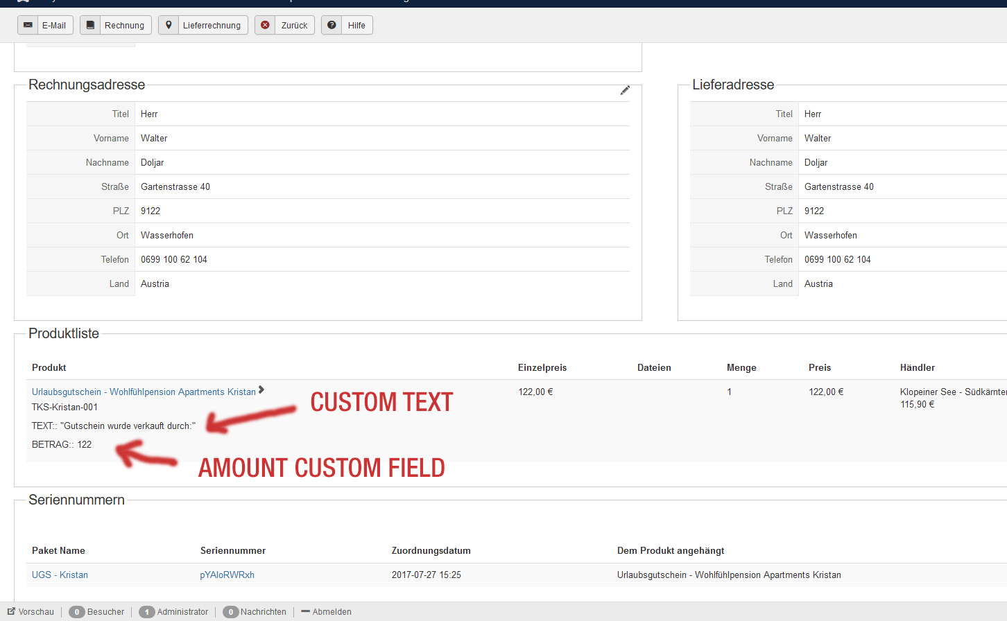 Afterwards, the "attach serial" plugin is working on the database level ; if the data is in the table order_product, the plugin will be able to display it.