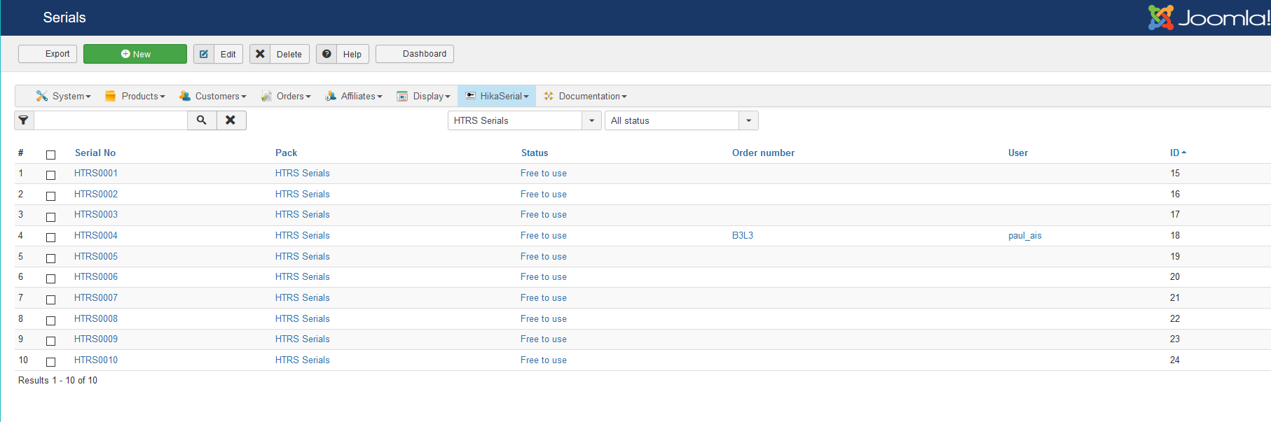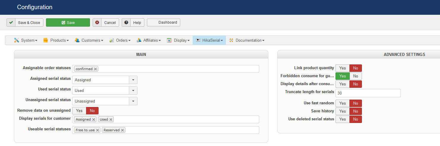 I have tried to set up HikaSerial but it is not working, here's what happened: