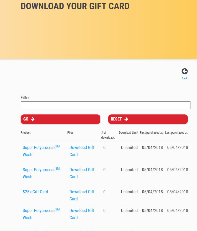 Regarding the "download gift card" in your order details ; it should display the filename that you have specified in your product configuration.
