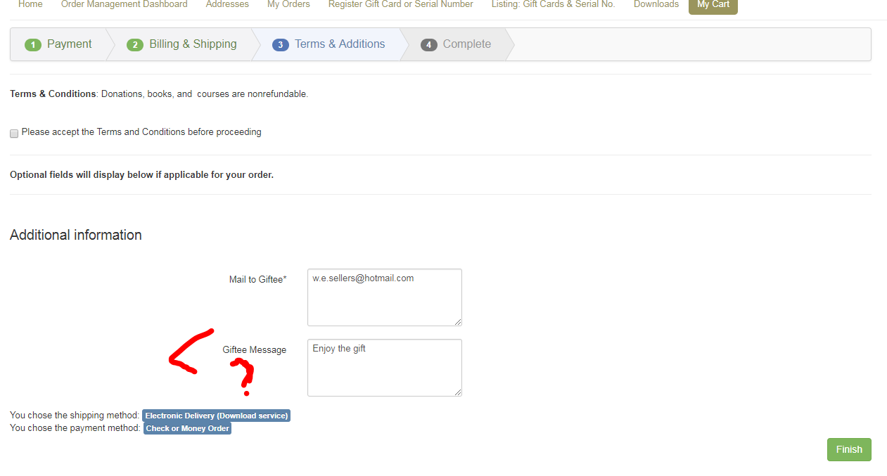 Currently during checkout, i enter an email in my custom field Giftee email.