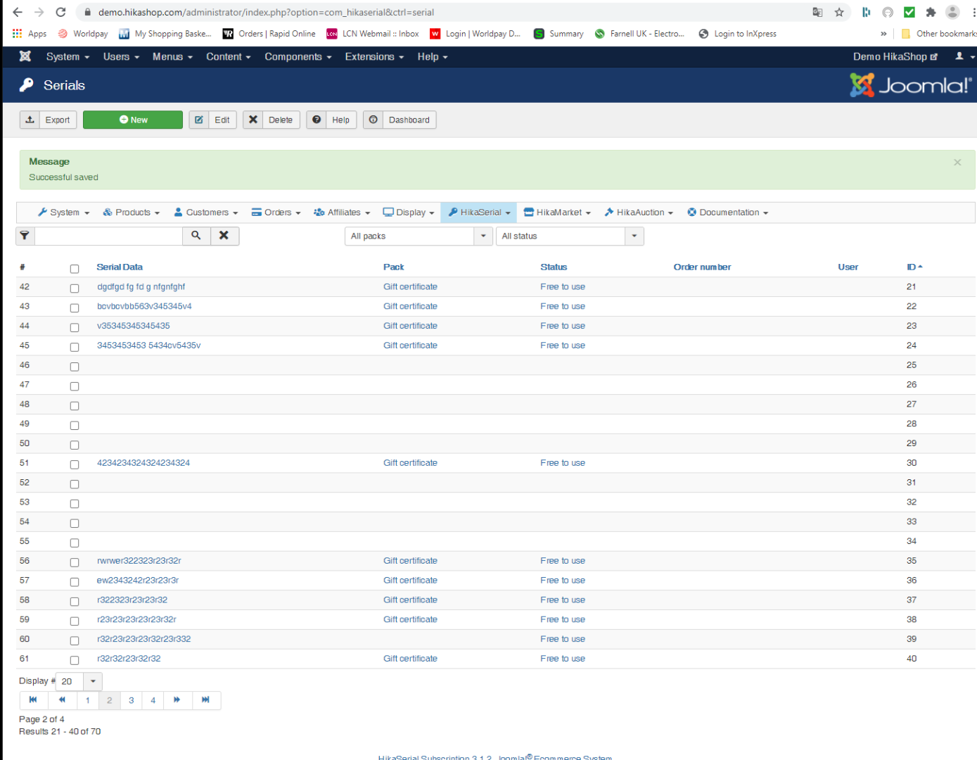 In order to avoid the issue before a fix, use the "save" and "cancel" buttons instead of the "save & close". If you do use the "save & close" and you want to change the pagination, click on the heading "Serials" (which is also a link) in order to reload the page without the "task".