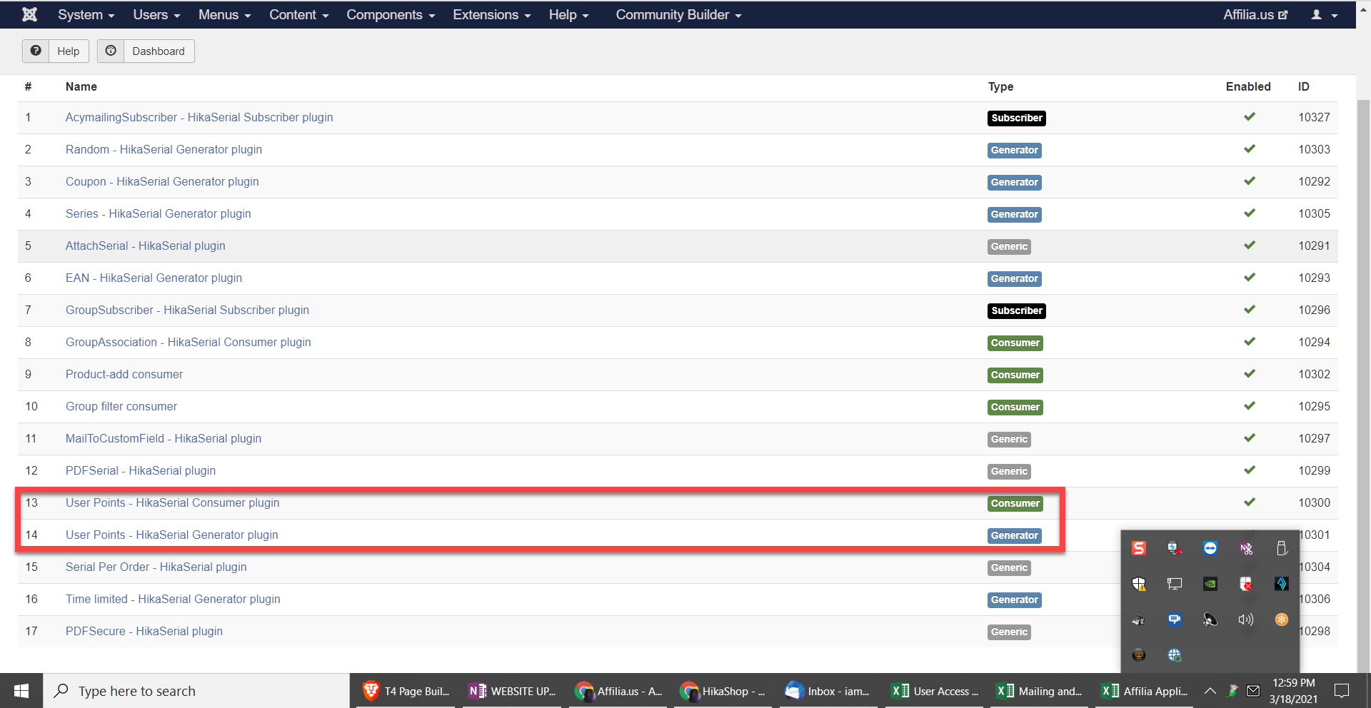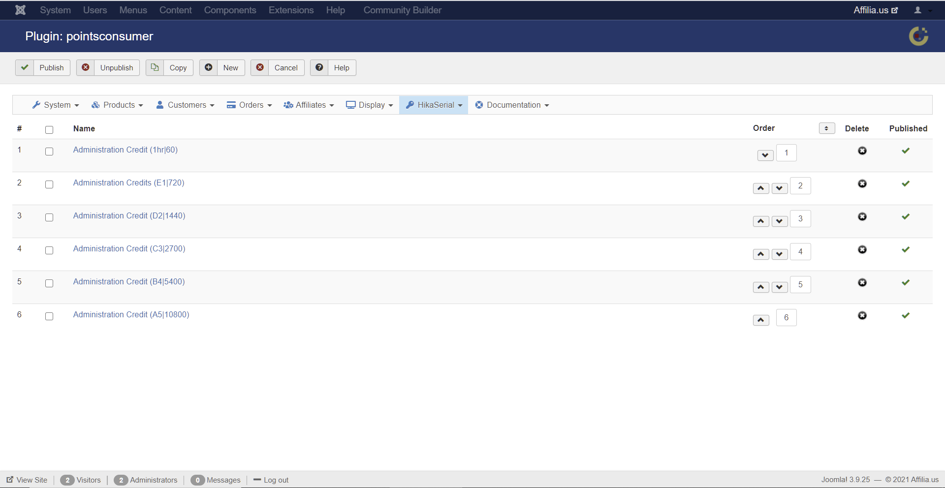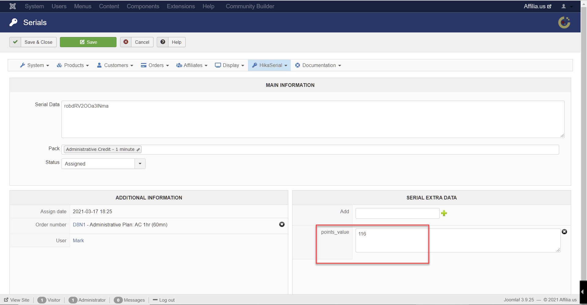 So you need the HikaSerial consume page (or consume module), to let the user enter a serial and receive the points.