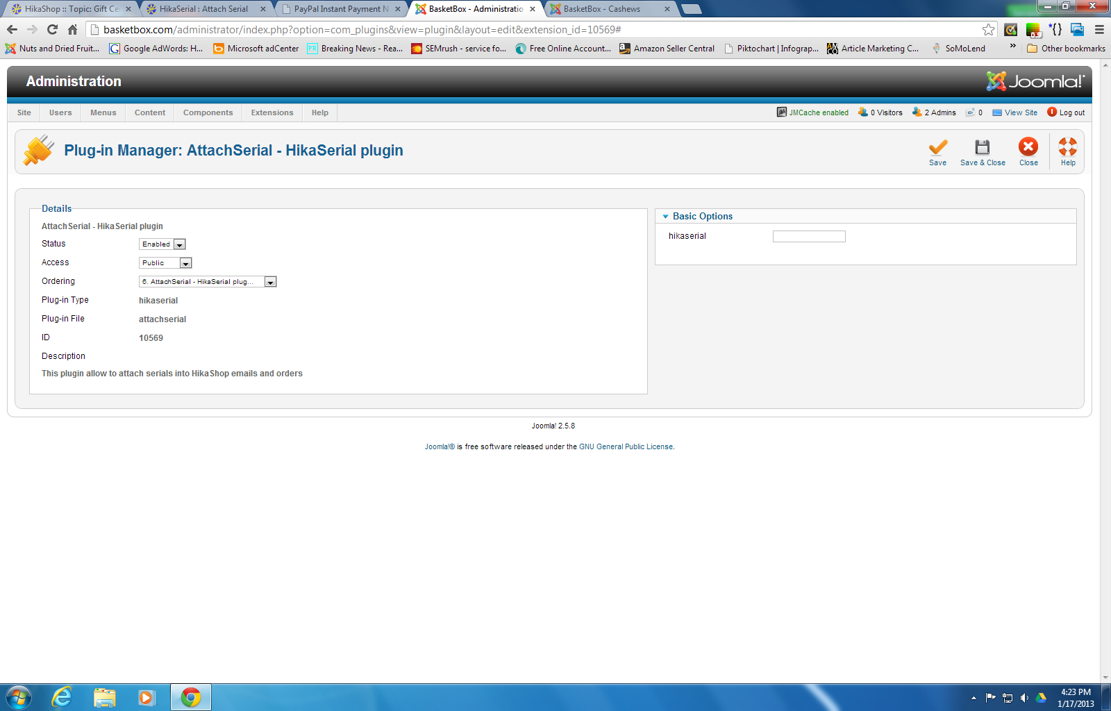 (menu) HikaSerial | System > (submenu) Plugins. Then "Attach Serials Plugin".