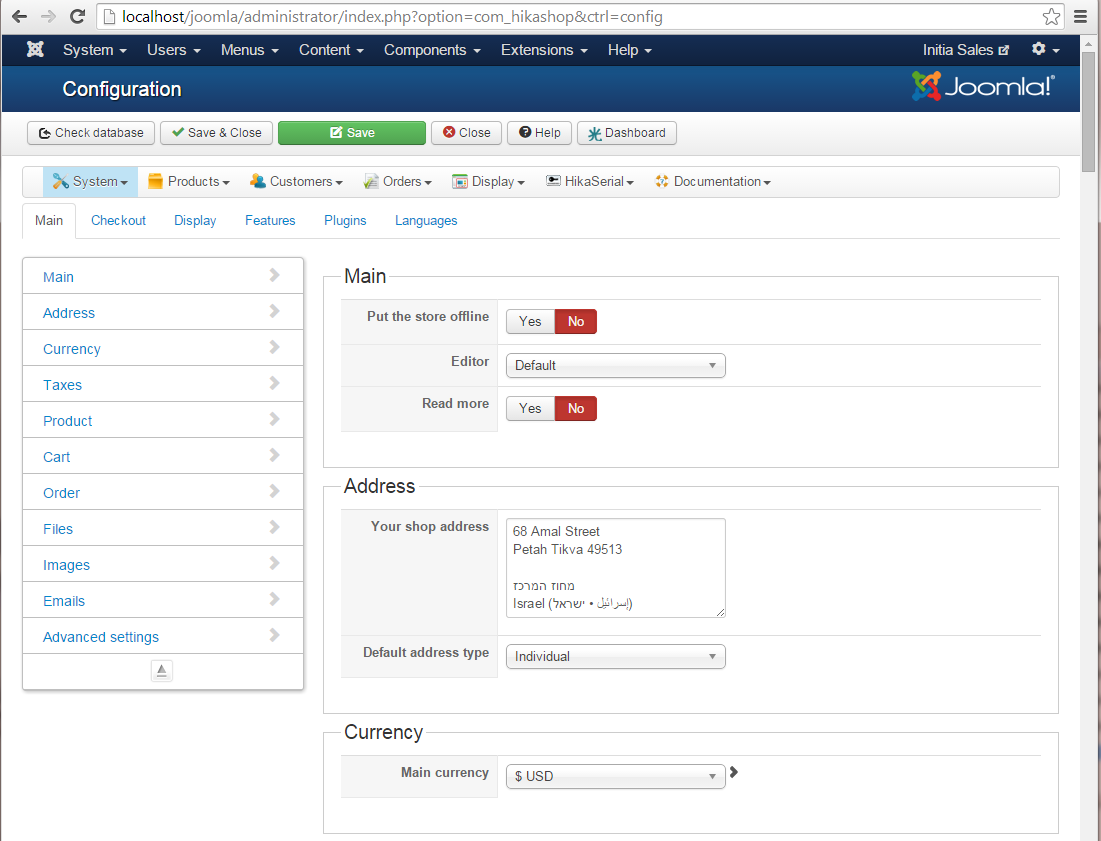 I have attached the Hikashop configuration page where you can see that the main currency is indeed configured.
