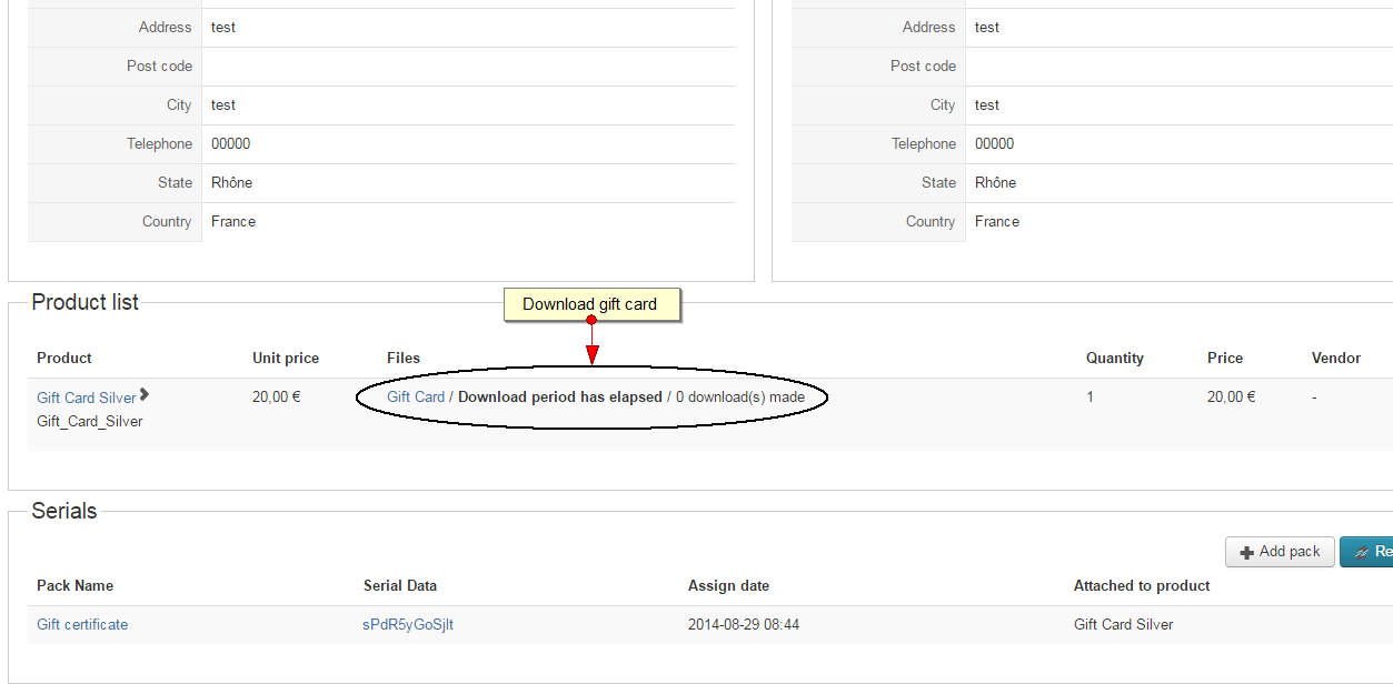if client does not get the email (deleted, spam, wrong mail) the attached gift car was, is it possible for me, as administrator, to access that customized gift card and download/print it?