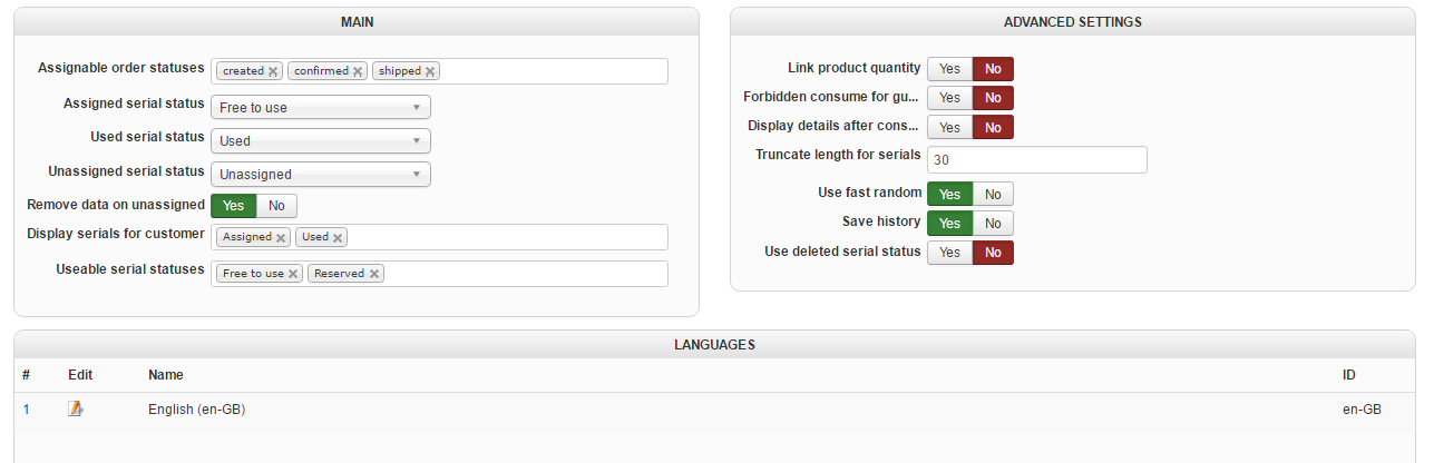The "Assigned serial status" must be "assigned" and not "free to use"
