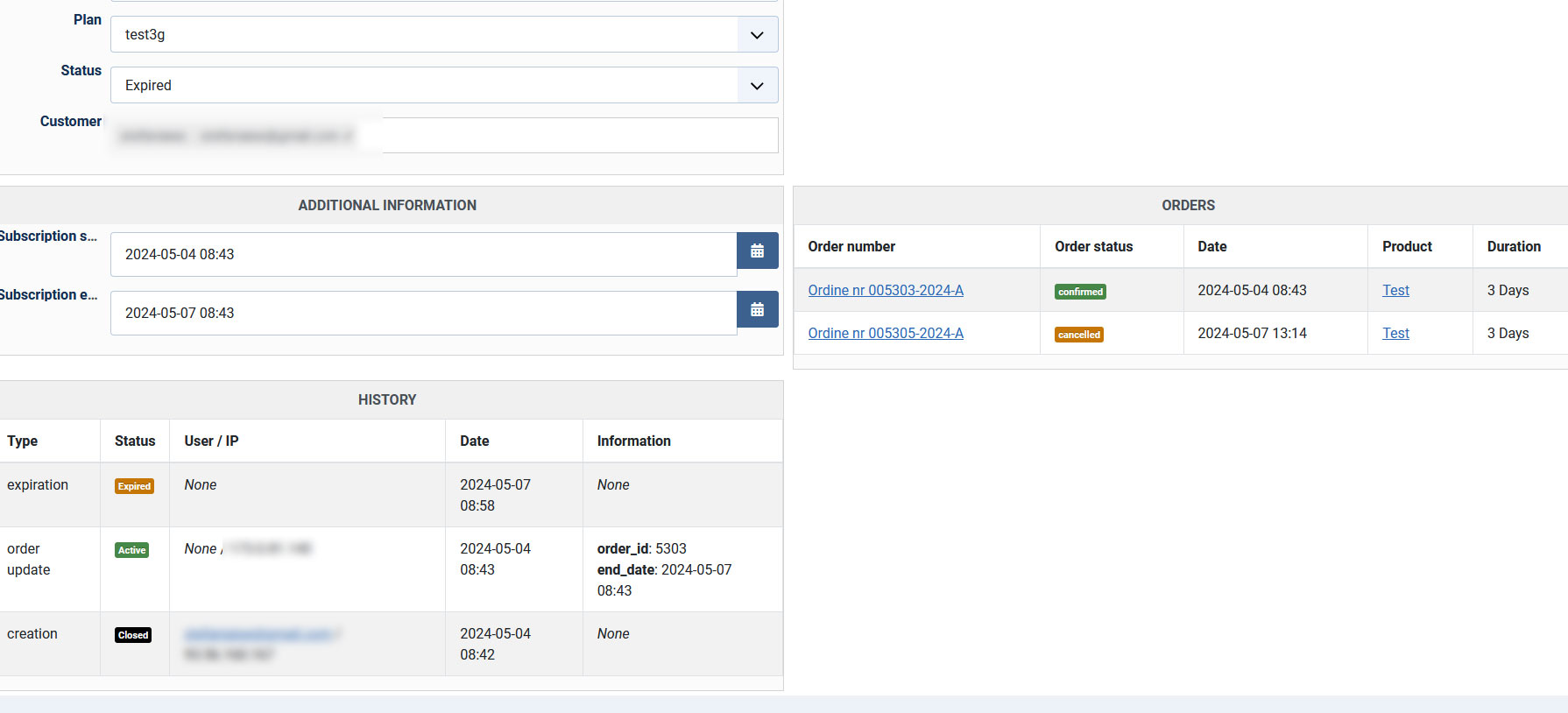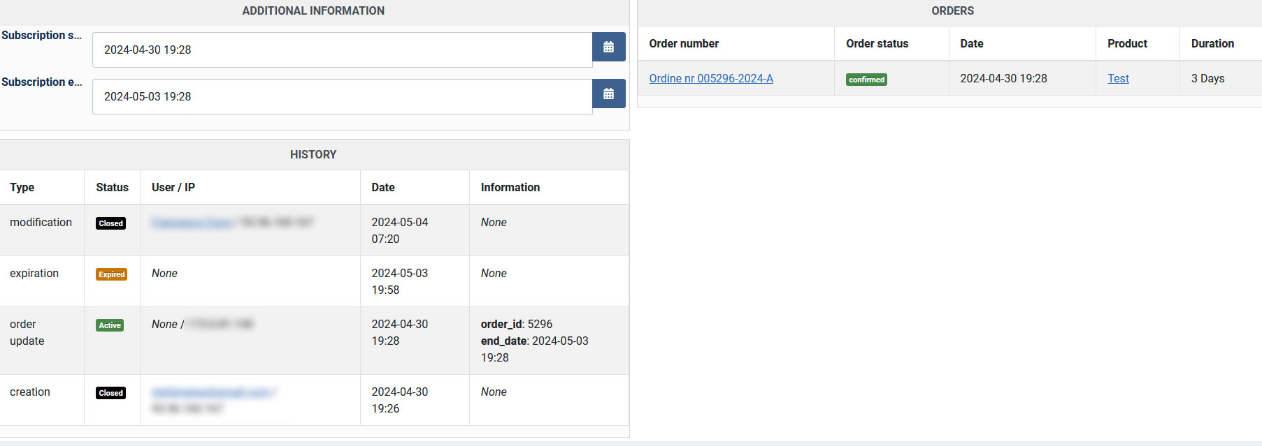 The first test, without coupon, went well, the order and the renewal order were done correctly.