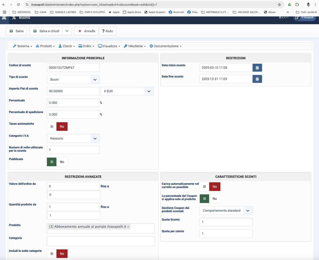 But you can use the "generator" to create 1200 coupons with (obviously, since it's the main goal of HikaSerial) random and uniques "codes / serials".