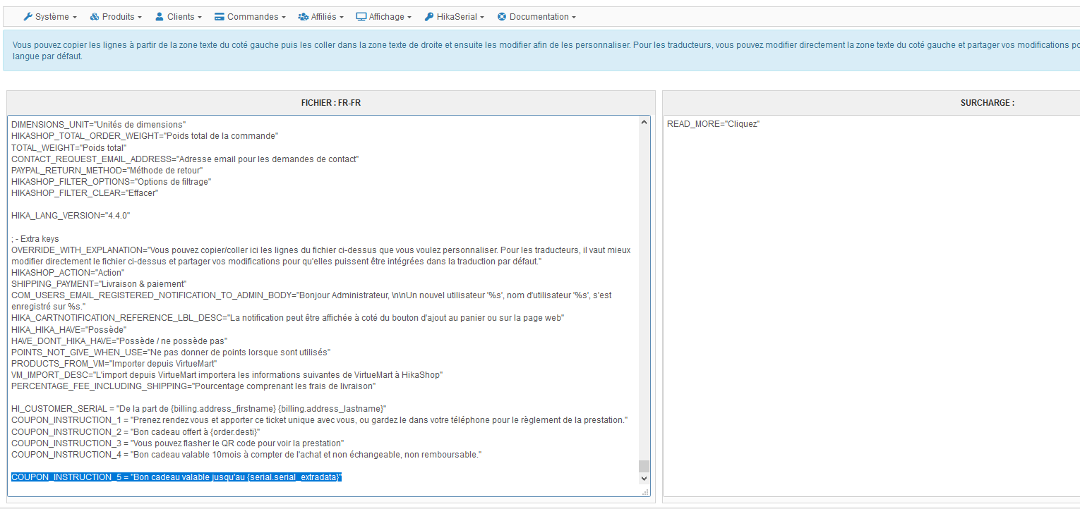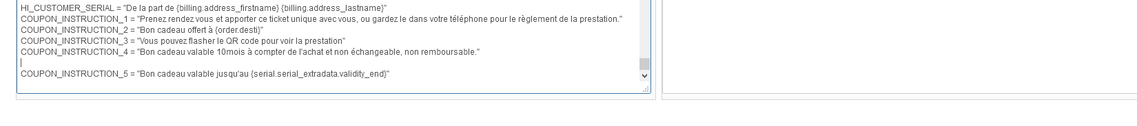 - Si je mets la formule {serial.serial_extradata} (sans rien derrière), j'ai un résultat, mais pas escompté, j'ai entre autre le résultat du validity_end du serial (exemple "1606172400" ) mais ce n'est pas la date de péremption recherchée (10 mois après l'achat).