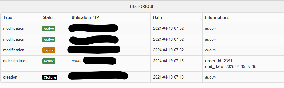 Les précédentes captures sont incomplètes et ne permet pas de voir quelle est la date d'expiration (initiale / modifiée manuellement).