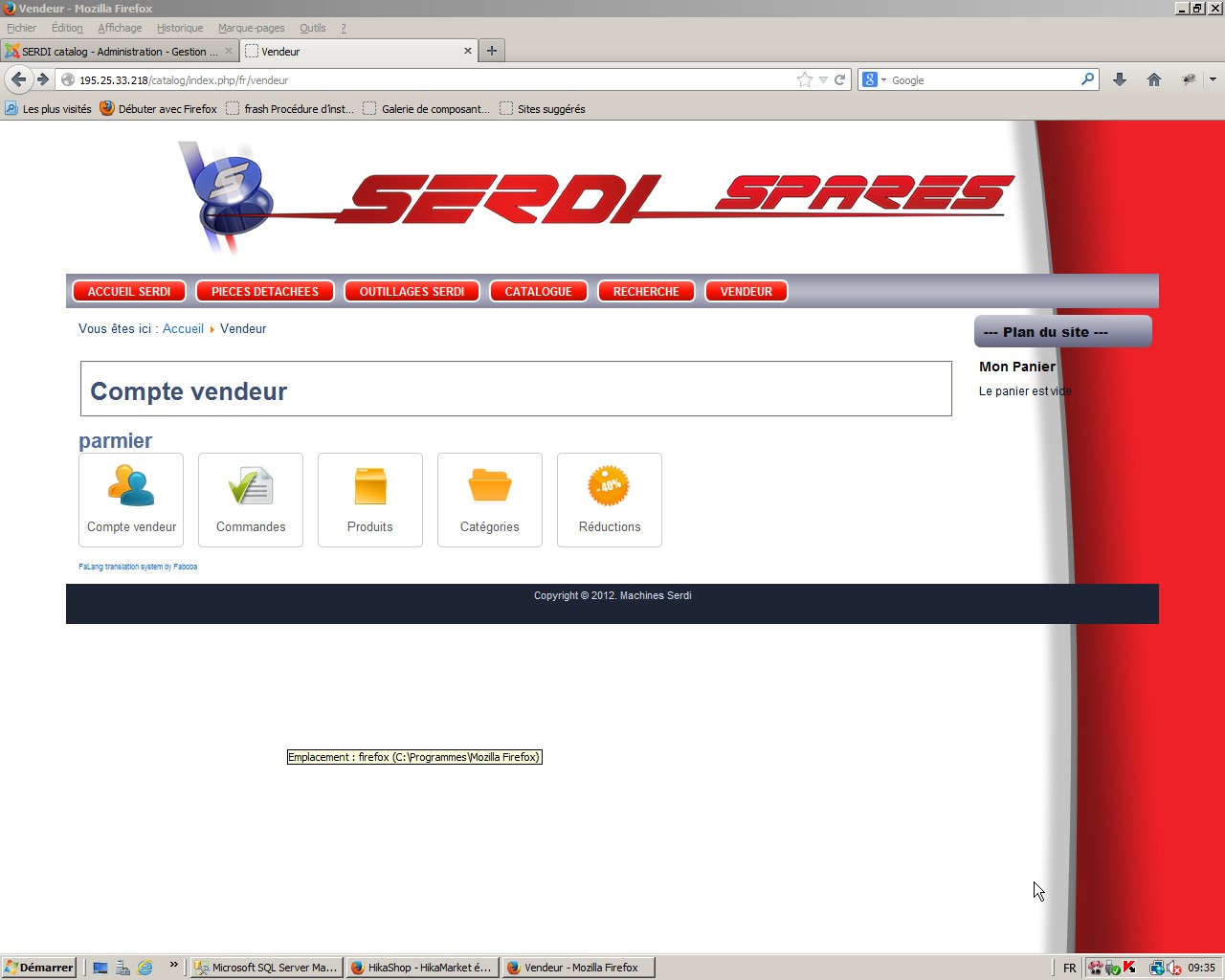 Depuis cette interface il peut accéder à ses commandes (mais il faut déjà qu'il ai vendu de ses produits), mais également à ses produits (et il peut en créer) et ses catégories (si jamais il possède une catégorie qui lui est propre).