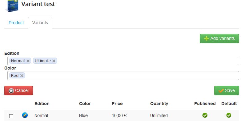 The current development (after a tiny night) allow to save the variant (still in ajax) and also to make a global save (to save the product and the variant in the same time).