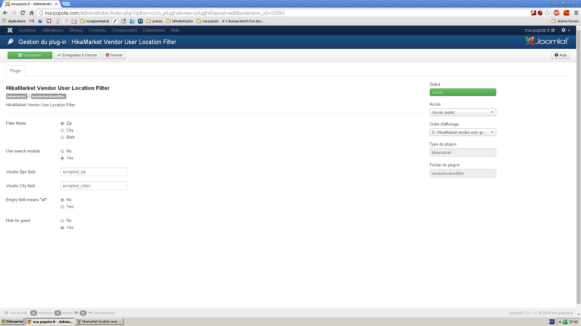 The, you have to edit the plugins "HikaShop vendor user location filter" (which allow filtering on product listings)