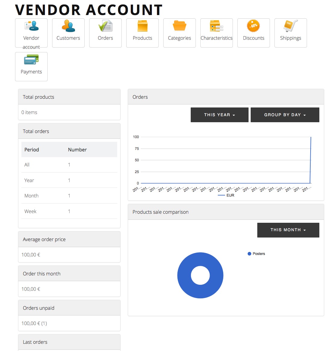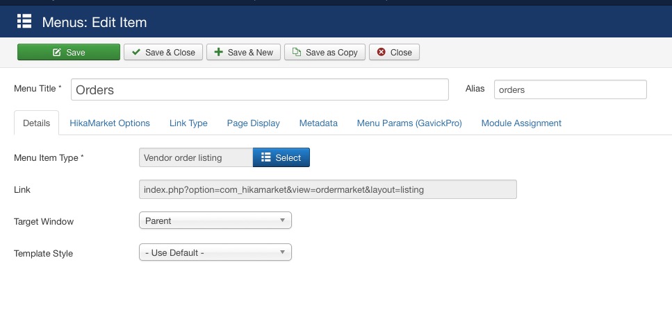 The "vendor order listing" do not have any option because there is no need for options ; it is just a menu which point directly to the vendor order listing, menu that you can also have through your vendor dashboard.